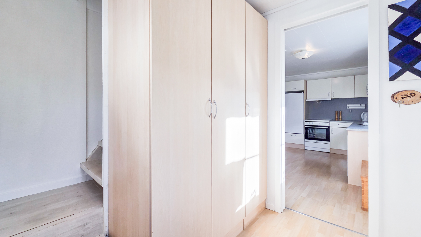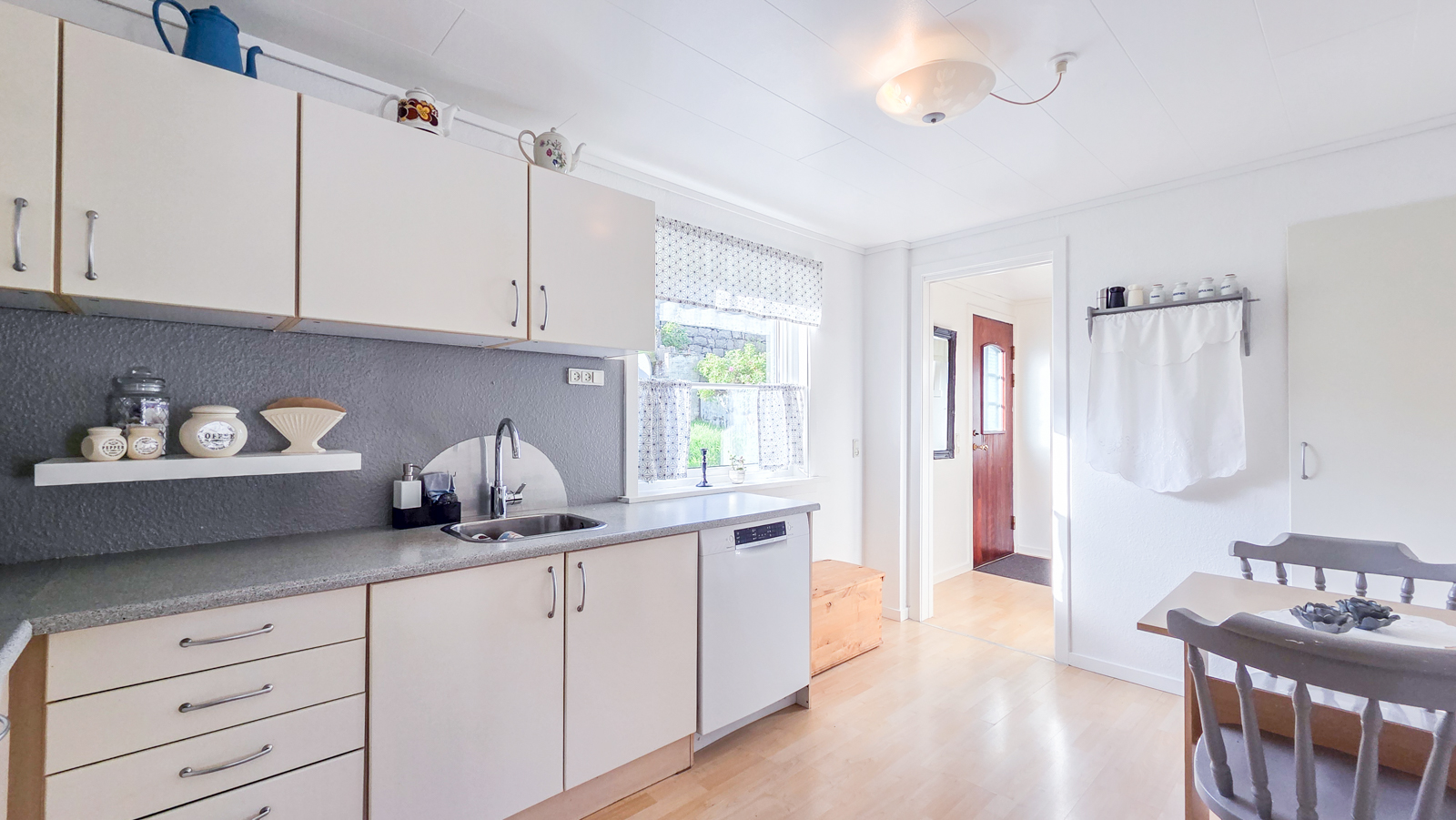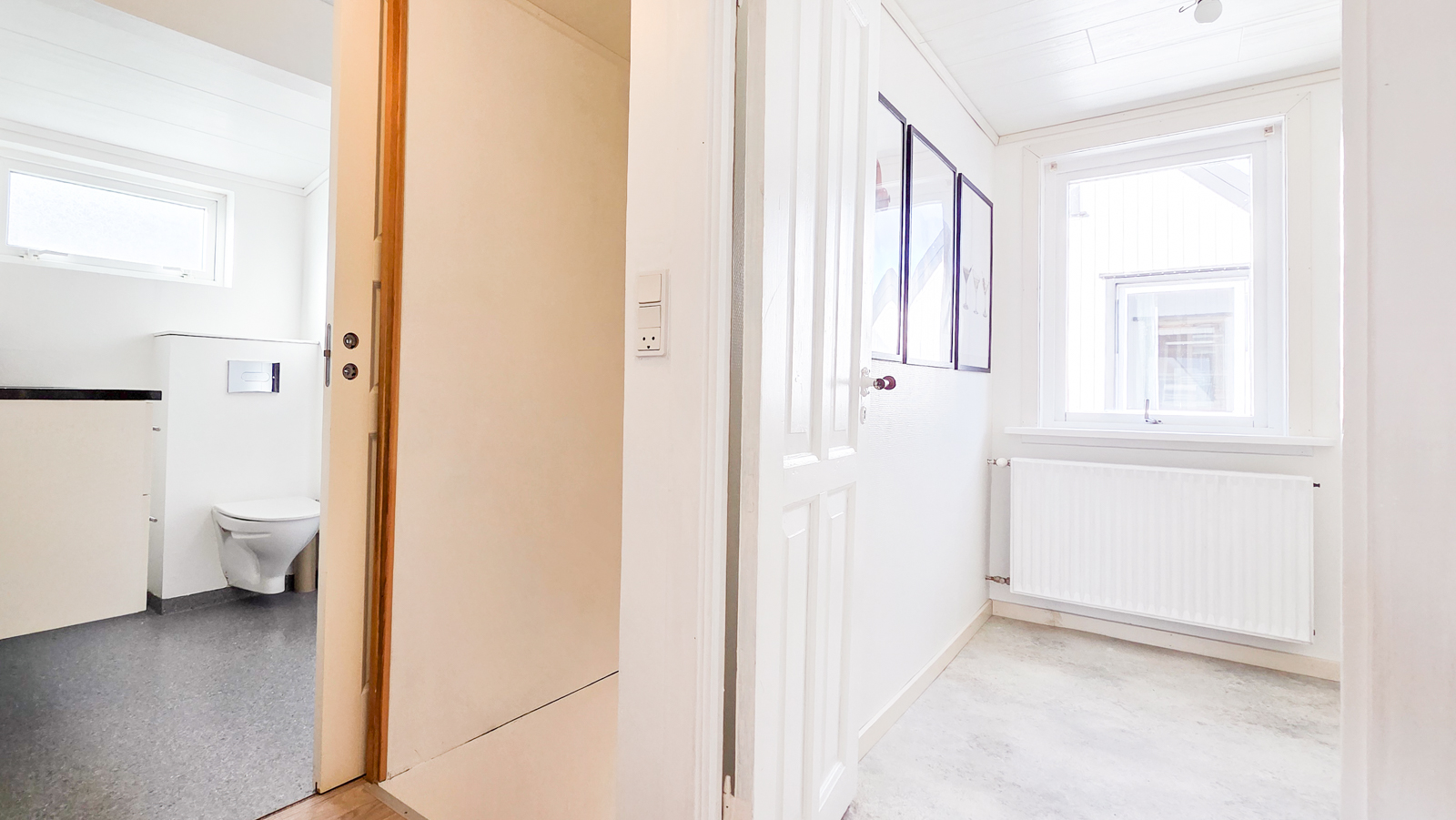 Húsini eru innrættað soleiðis. Á miðhæddini er durur, køkur og stova. Á loftinum er gongd 2 kømur og baðirúm. Í kjallaranum er eitt stórt opið rúm.