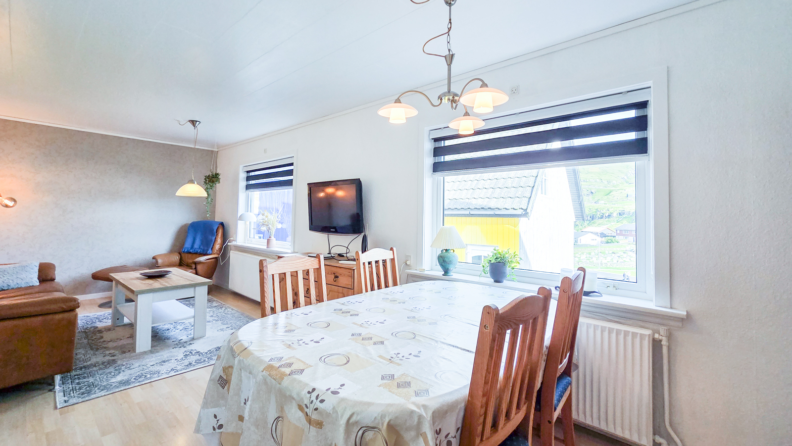Sethúsini eru staðsett mitt í bygdini, stutt til handils, skúla, barnagarð o.m.a.