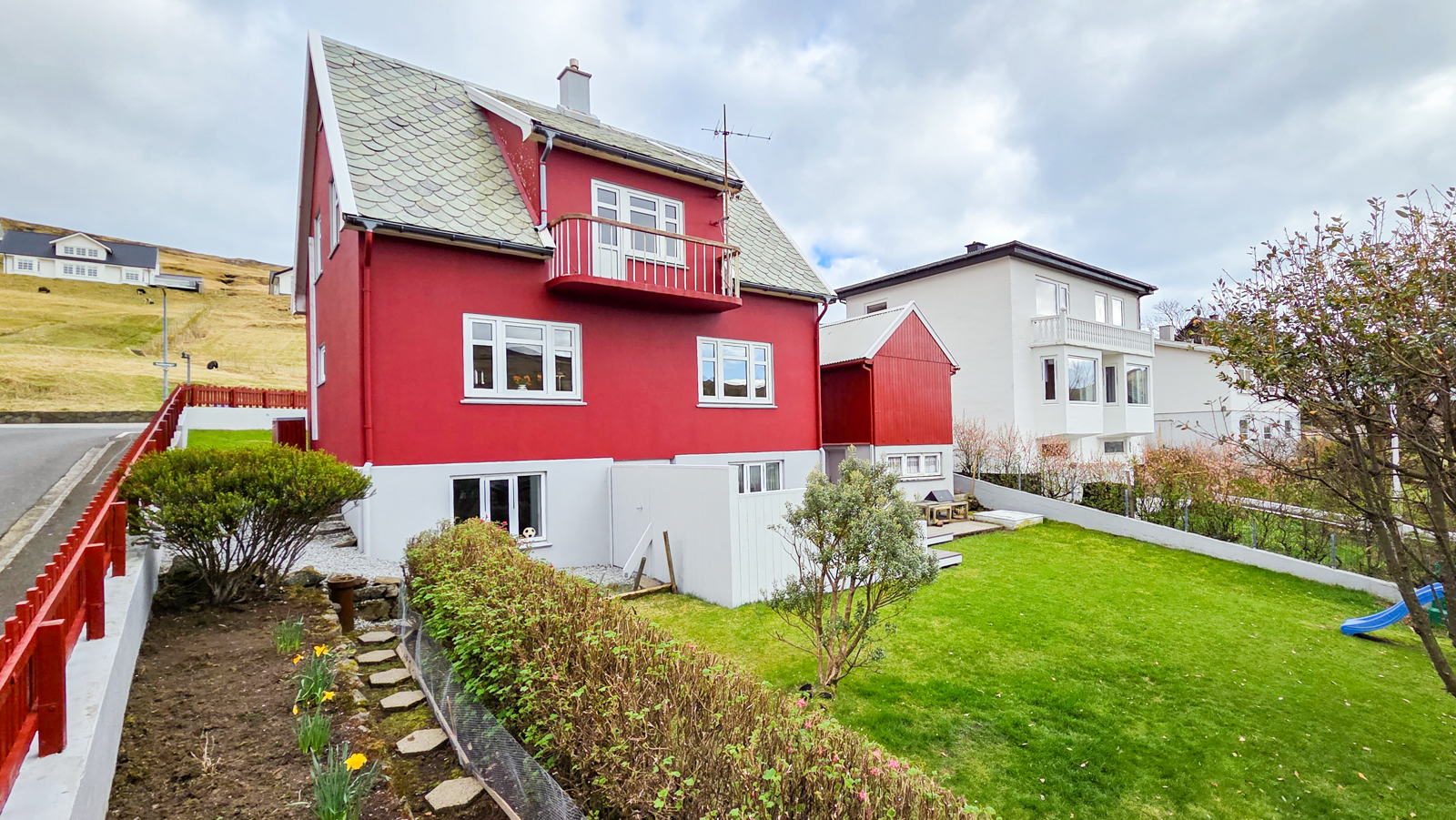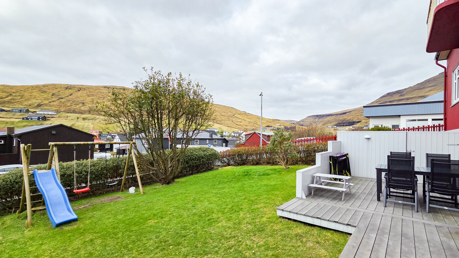 Hesi sermektu húsini eru væl bygd og rúmlig. Tað eru 5 kømur og 2 baðirúm. Húsini eru staðsett mitt í bygdini og í stóra garðinum finnur tú altíð ein “sólkrók” – sólin skínur (næstan) altíð í Sandavági
