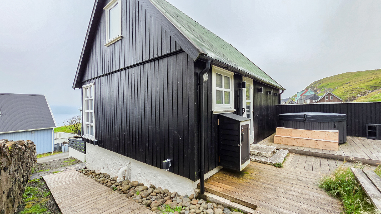 Húsini eru upprunaliga frá 1910, men vóru nærum heildardagførd í 2019. Húsini eru sera hugnalig og uppløgd sum frítíðarhús. Rundan um húsini er stórt útigólv, hitapottur og góð parkeringsviðurskifti (við løðara).