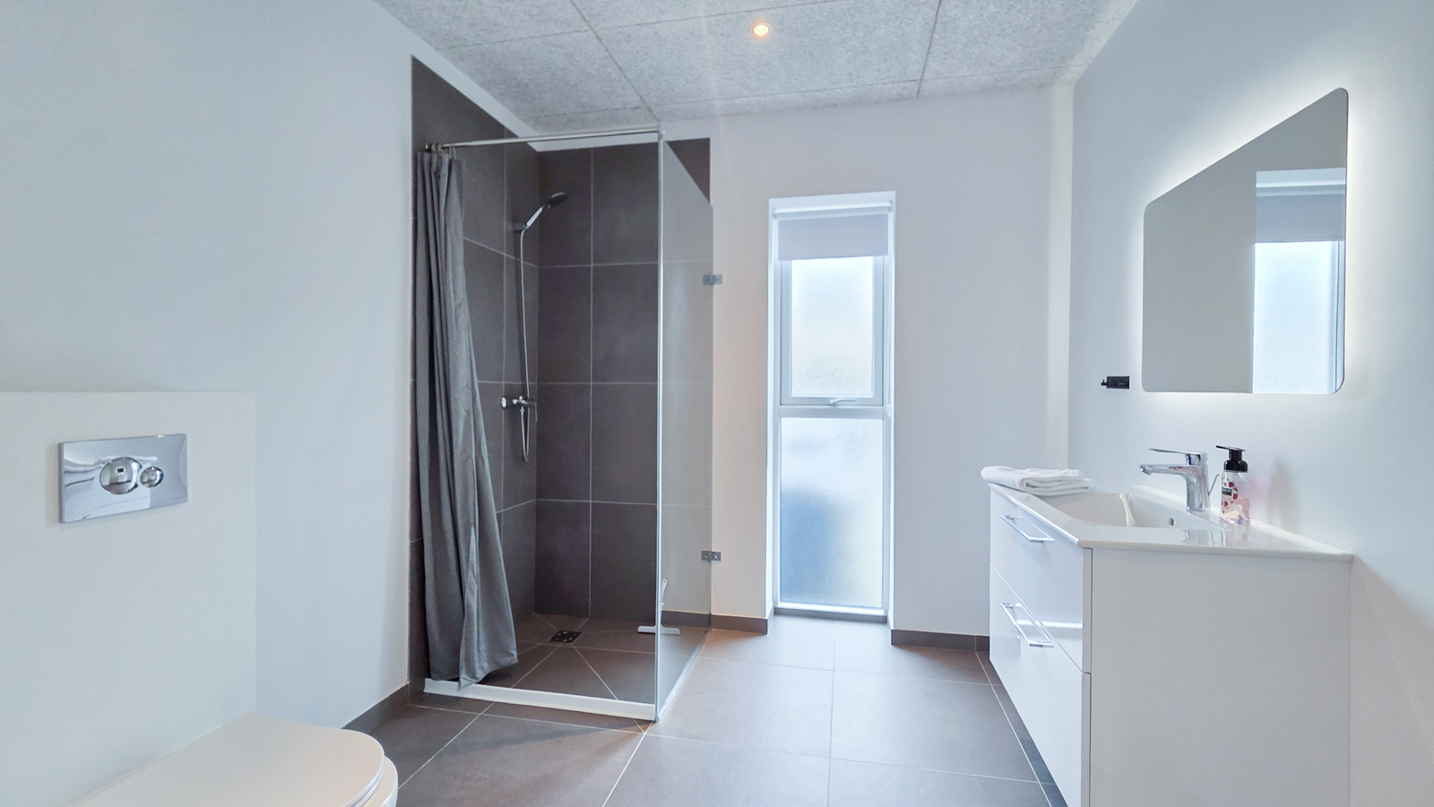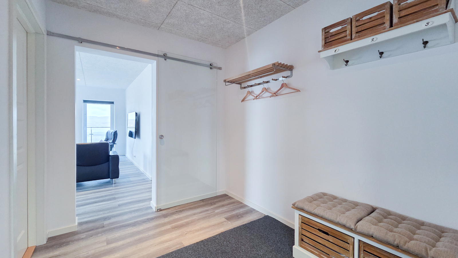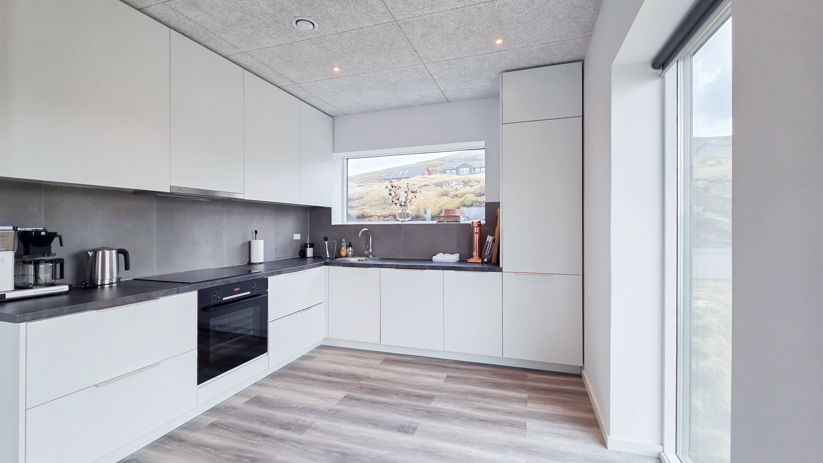 Íbúðin, ið er spildurnýggj (árg. 2024), er ljós og rúmlig, hon hevur 3 kømur og eitt baðirúm, umframt stórt alrúm v/altan. Harumframt er eitt teknikrúm. Íbúðin er næstan ikki brúkt, og framstendur hon sum spildurnýggj. Ognin er staðsett í friðarliga umhvørvinum uppi á Kvíggjarvegi. Harafturat er útsýnið einastandandi gott.