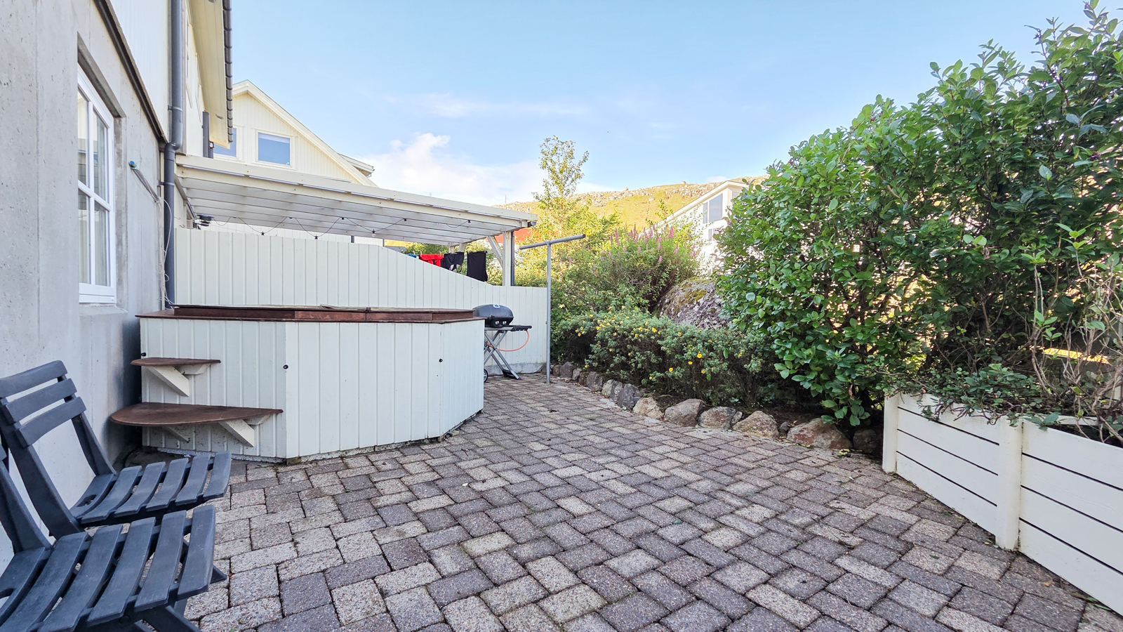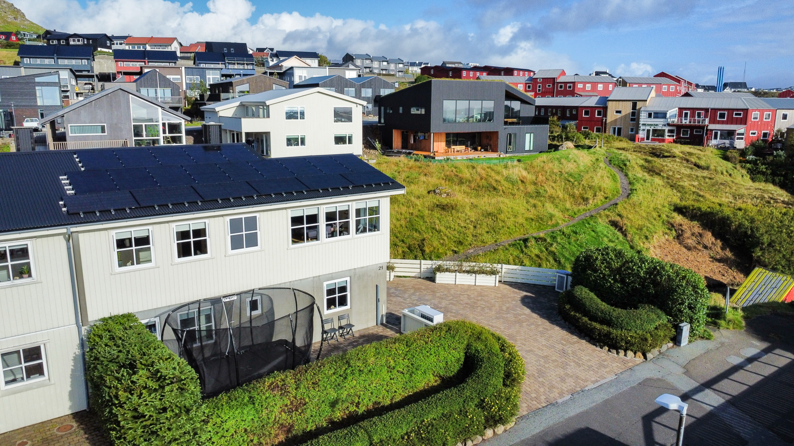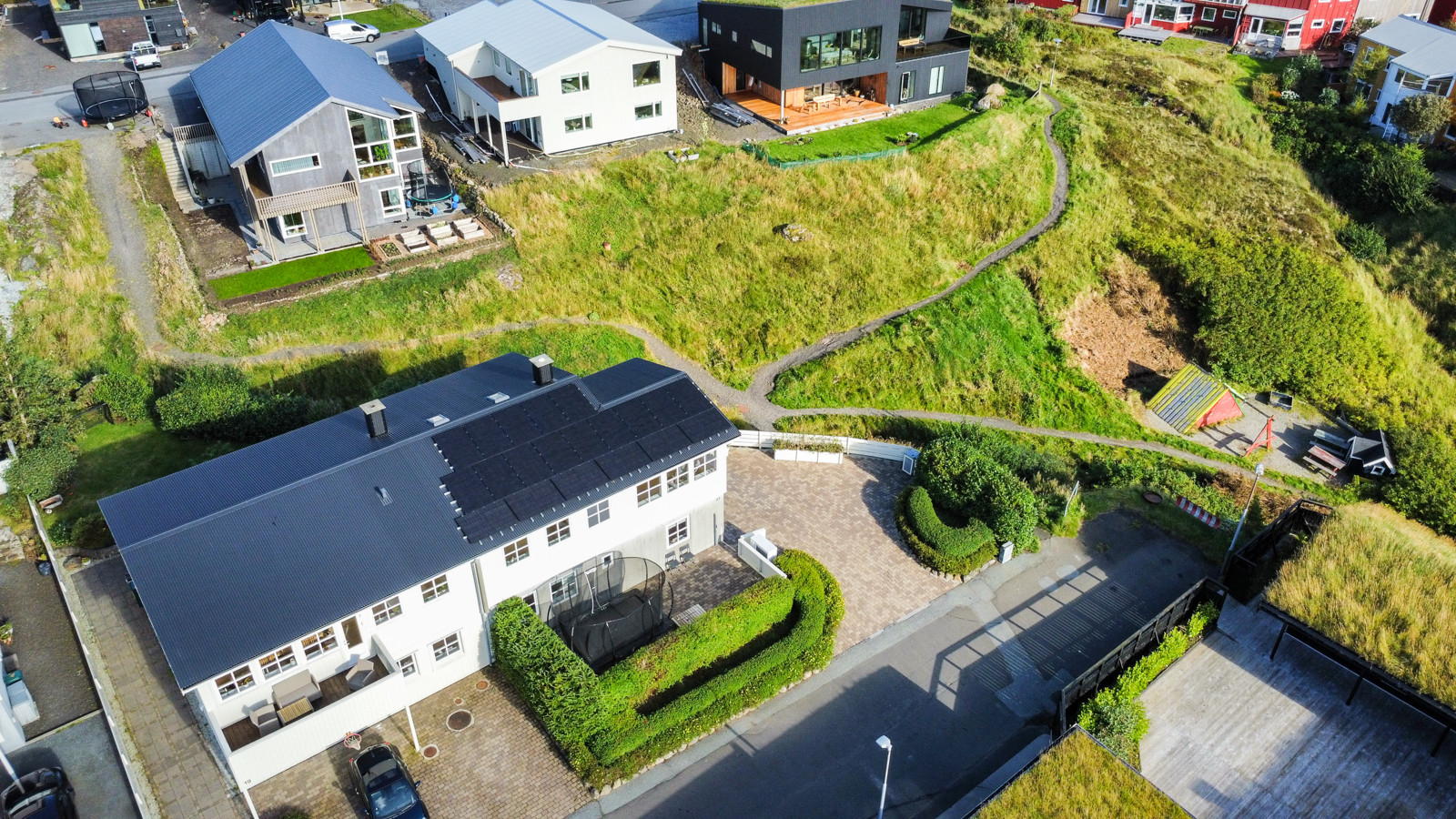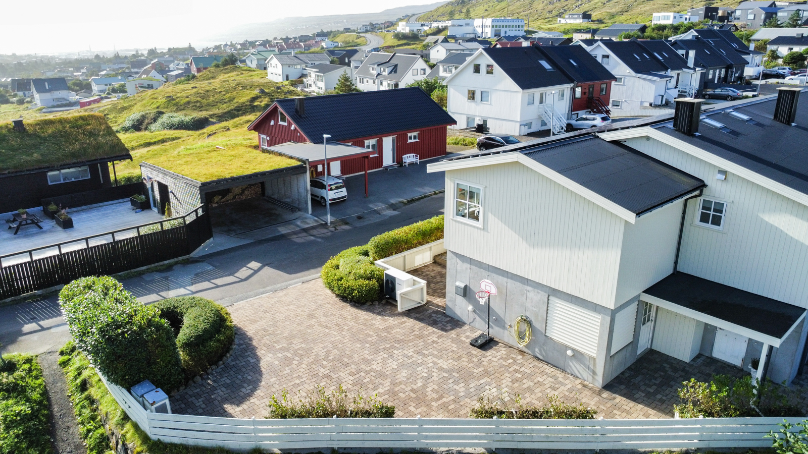 Áhugaverd, rúmlig og væl bygd tvíhús á Mækjugøtu. Húsini eru staðsett í barnavinarligum umhvørvi og útsýnið er gott. Rundan um húsini er stórt tún og góð parkeringspláss. Innan framstanda húsini góð og vælhildin. Húsini eru innrættað við m.a. 4 kømurum, 3 vesum (2 baðirúm), hjalli, stovu og køki í einum.