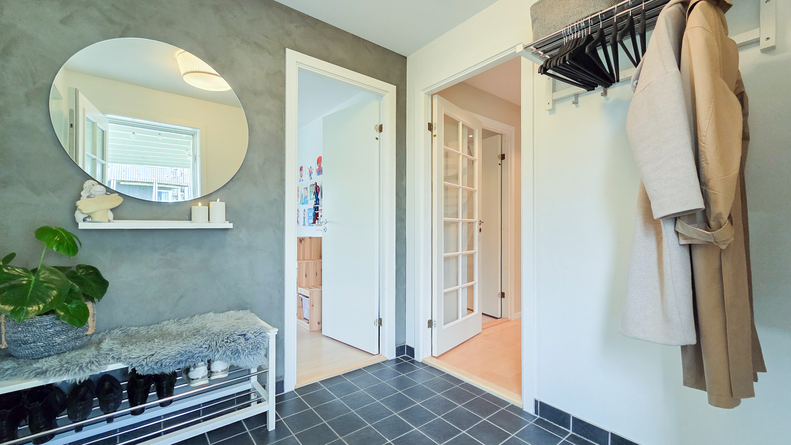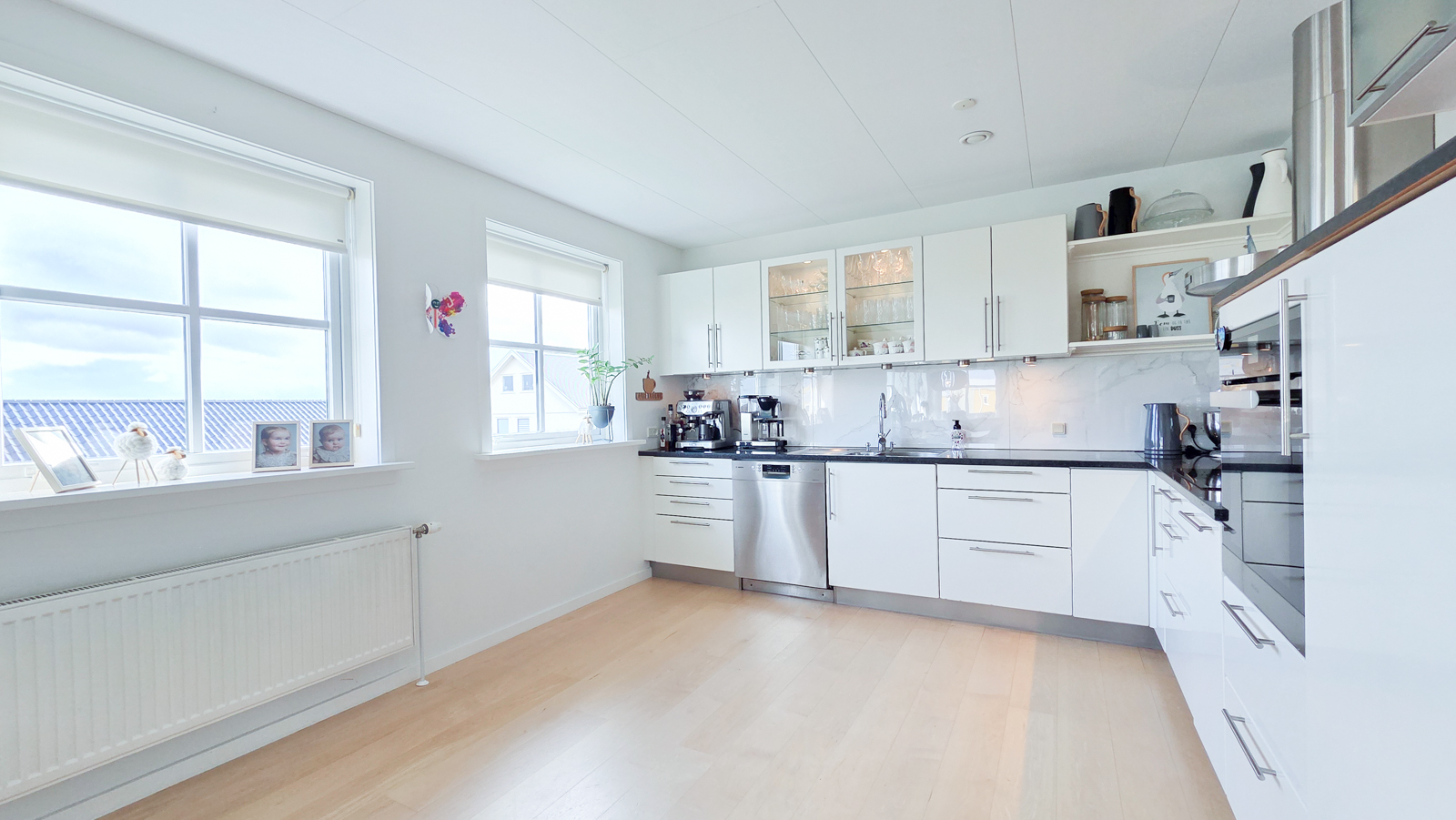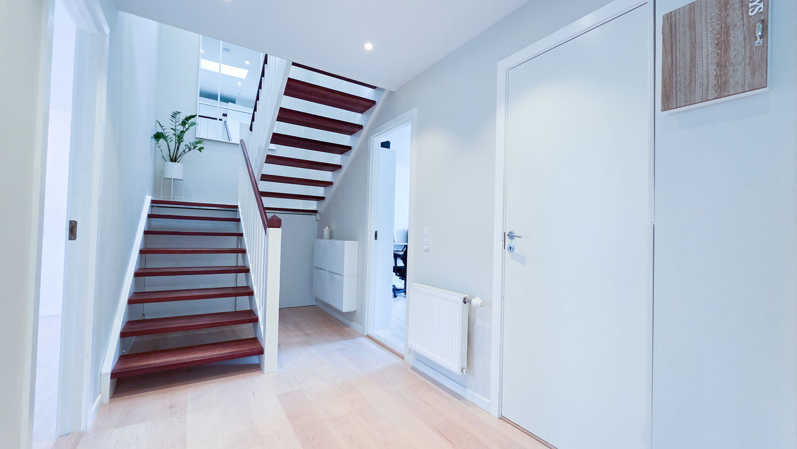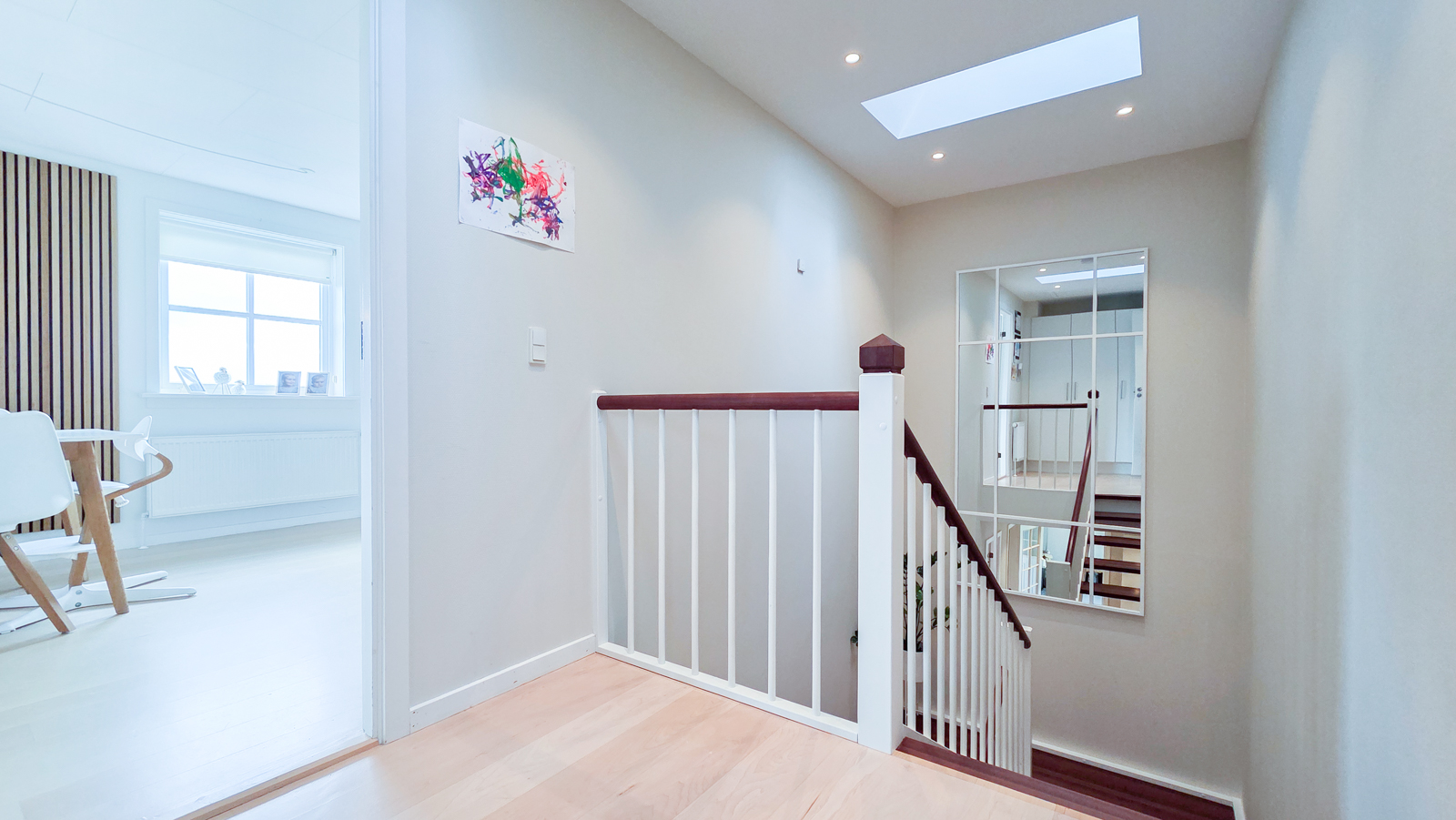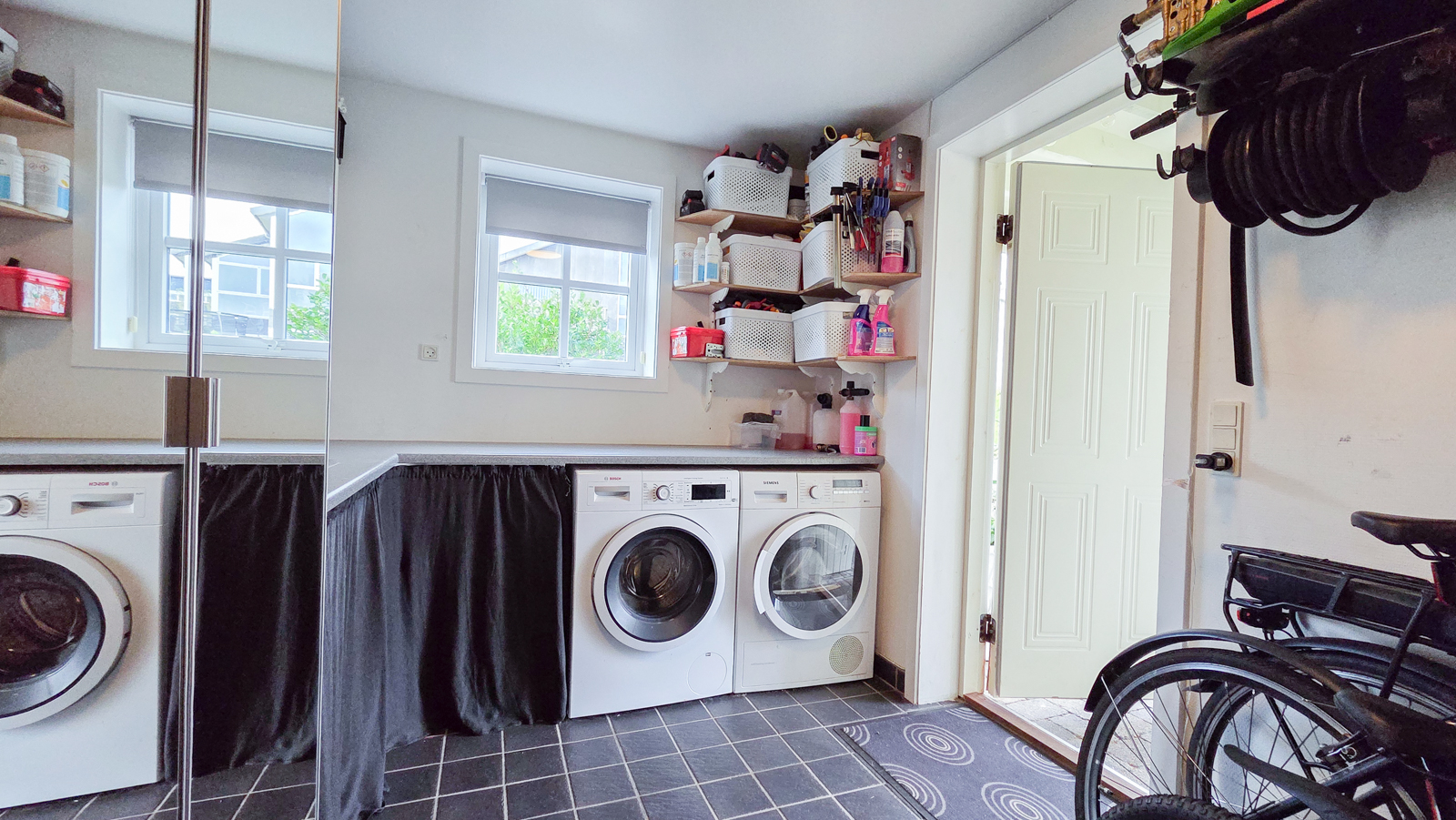 Áhugaverd, rúmlig og væl bygd tvíhús á Mækjugøtu. Húsini eru staðsett í barnavinarligum umhvørvi og útsýnið er gott. Rundan um húsini er stórt tún og góð parkeringspláss. Innan framstanda húsini góð og vælhildin. Húsini eru innrættað við m.a. 4 kømurum, 3 vesum (2 baðirúm), hjalli, stovu og køki í einum.