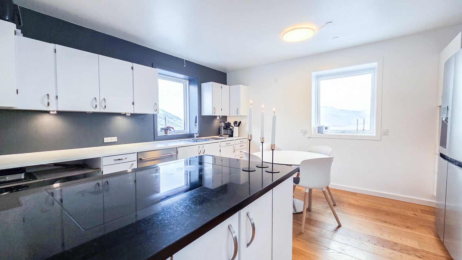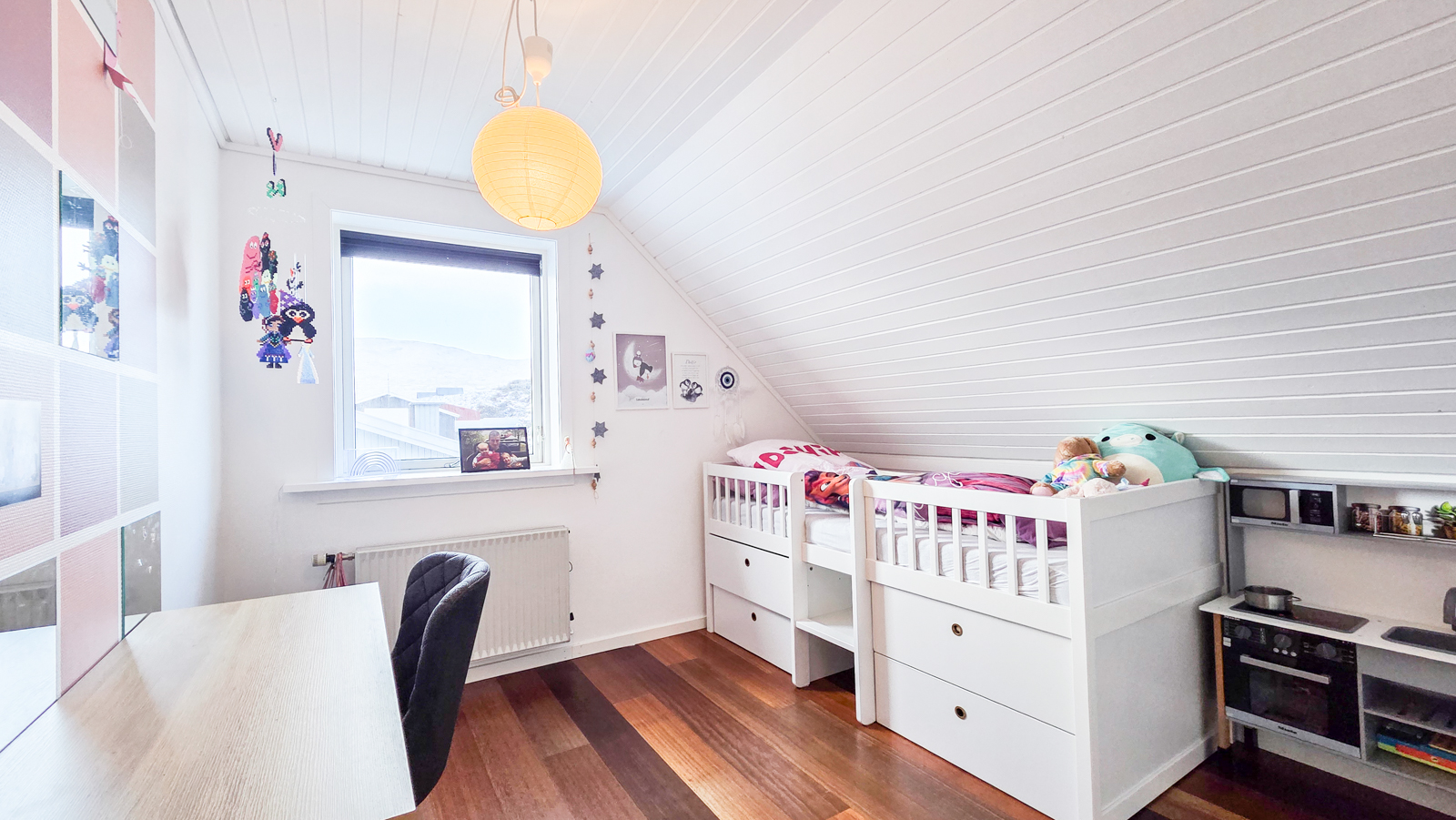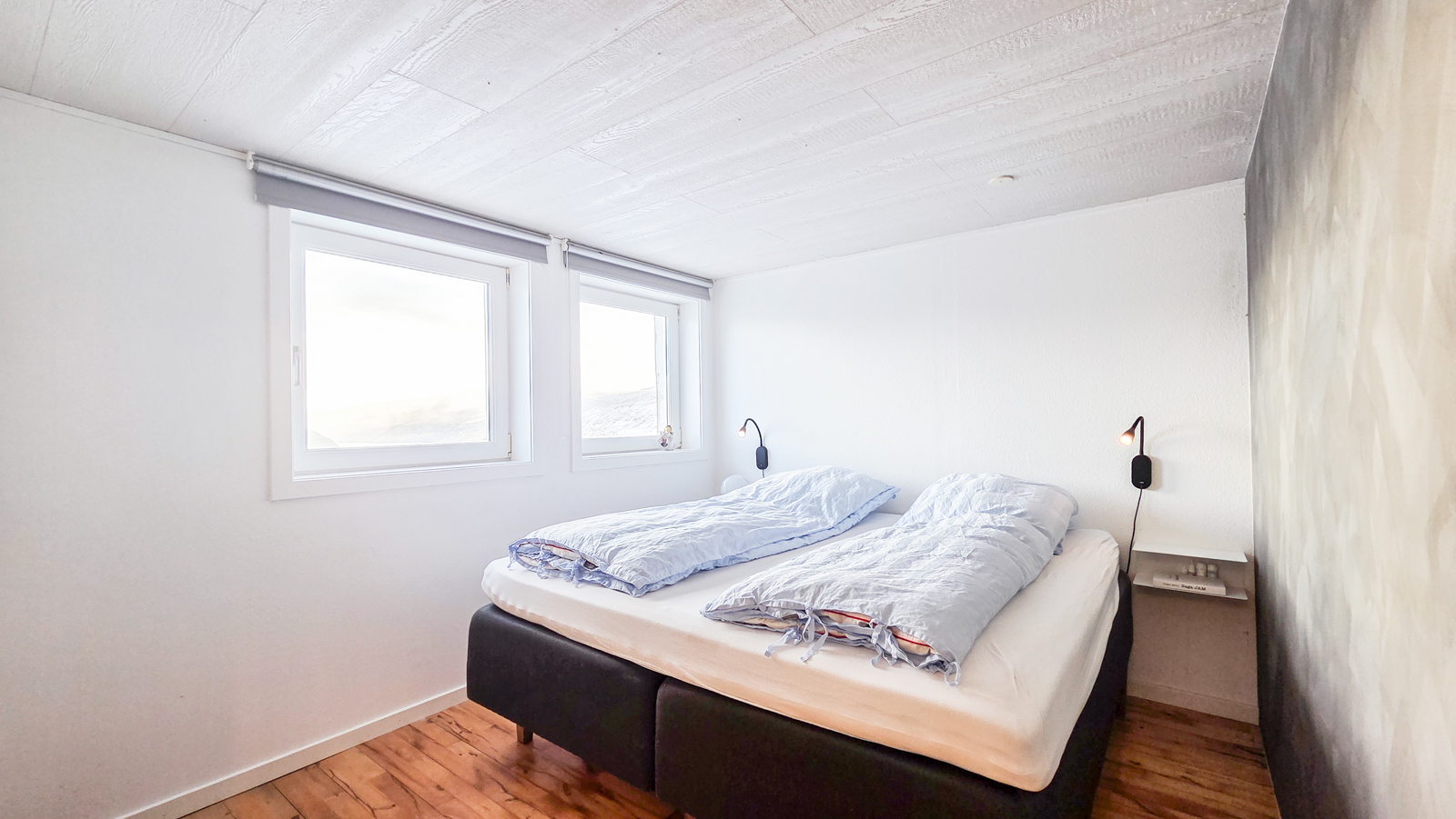 Húsini eru væl bygd og rúmlig. Tey hava m.a. 4 kømur, 3 vesi (harav 2 baðirúm), rúmliga stovu og køk. Húsini eru staðsett ovarliga í Vestmanna og hava eitt einastandandi útsýni.
