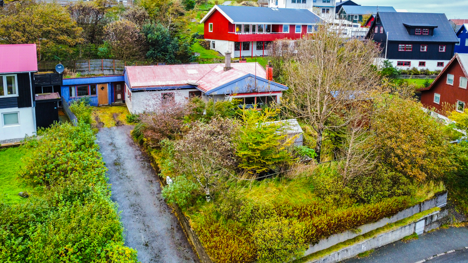 Stórt og áhugavert grundstykki við góðum møguleikum. Á grundstykkinum standa eini sethús, ið skulu heildardagførast. Góðir møguleiki at at endurnýta partar av húsunum. Rundan um húsini er ein stórur urtagarður, ið treingir til eina køna hond, men kann fáast til nakað serligt.